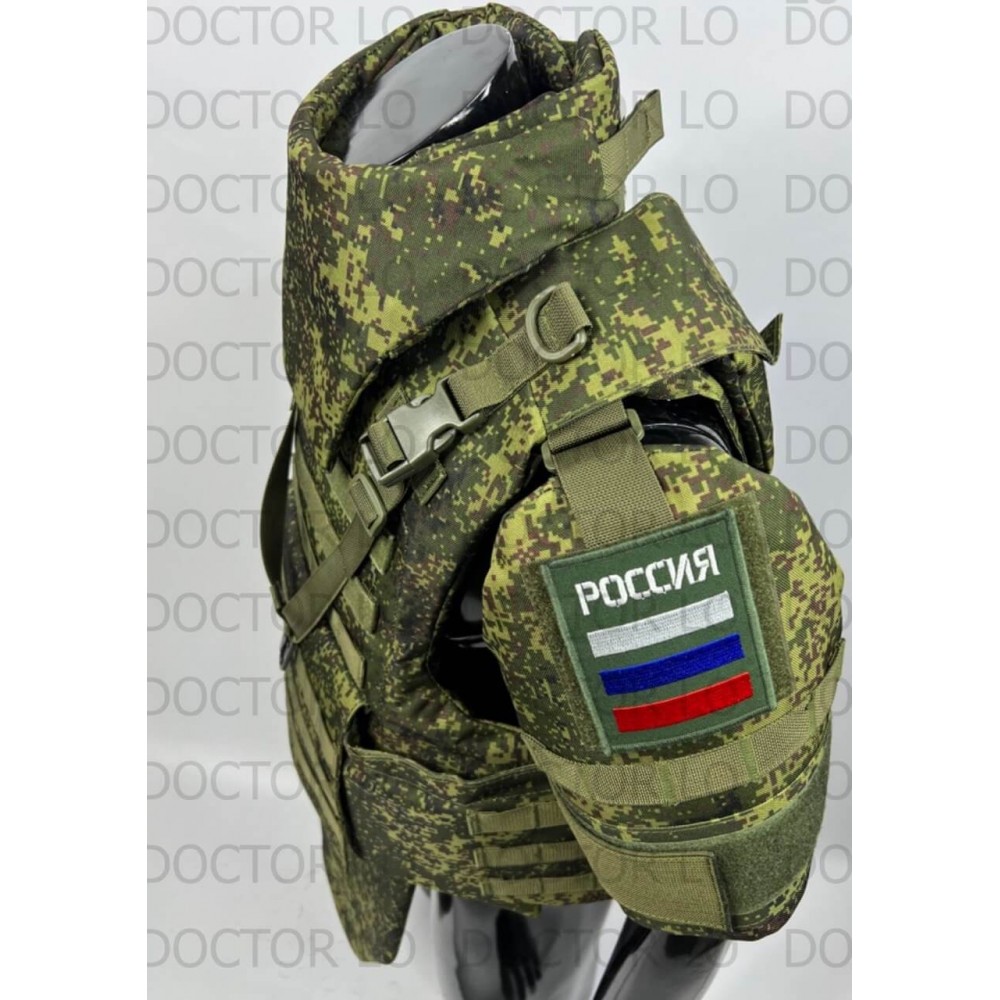 - Полная защита: баллистический пакет включает переднюю, заднюю, боковую, плечевую, паховую зоны и шею.